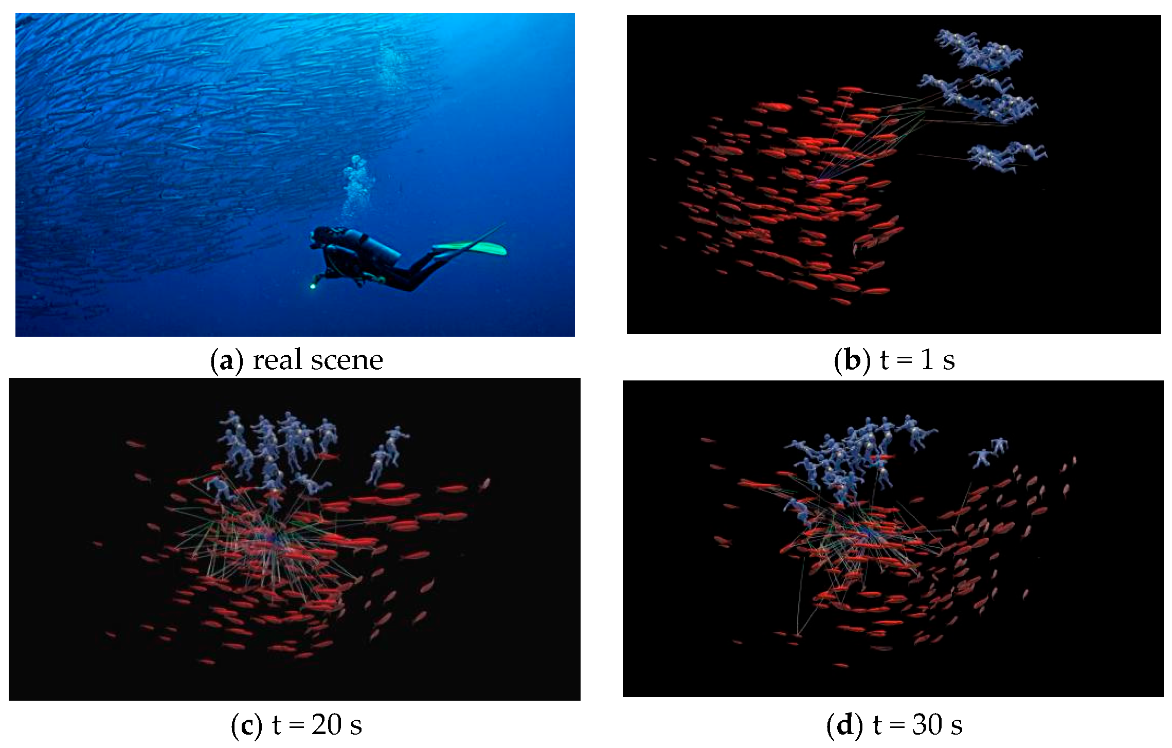 | Advantage | Easy to implement and the cluster behavior is realistic. | Supports 2D/3D models with plug-in behavior modules. | Individual strategies and group strategies are integrated. |