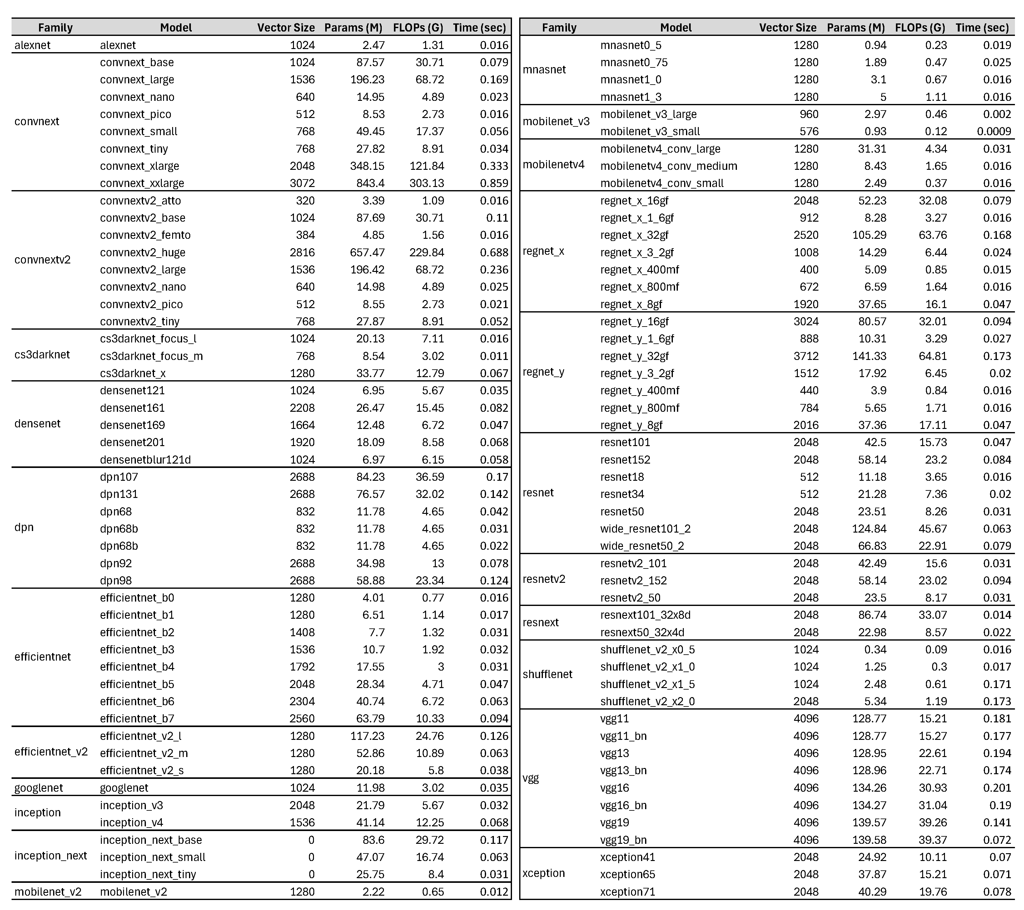 - We do not propose a novel CNN architecture, nor do we aim to achieve the best results on the current dataset by fine-tuning a given CNN architecture to mitigate misclassifications. Rather, our focus is on benchmarking pre-trained CNN backbones, which is considered a compulsory preliminary step. This is because newly proposed CNNs are often derived from well-known architectures such as ResNet or VGG. Identifying the best backbone for a given problem can then lead to improved results through the discriminative features it extracts. Given the vast number of available CNN architectures, evaluating all of them is impractical, while evaluating too few would fail to capture meaningful comparative insights. To ensure fairness, diversity, and comprehensiveness, we therefore evaluate 100 representative models from 16 distinct CNN families, providing a solid empirical foundation for future model development in this domain.