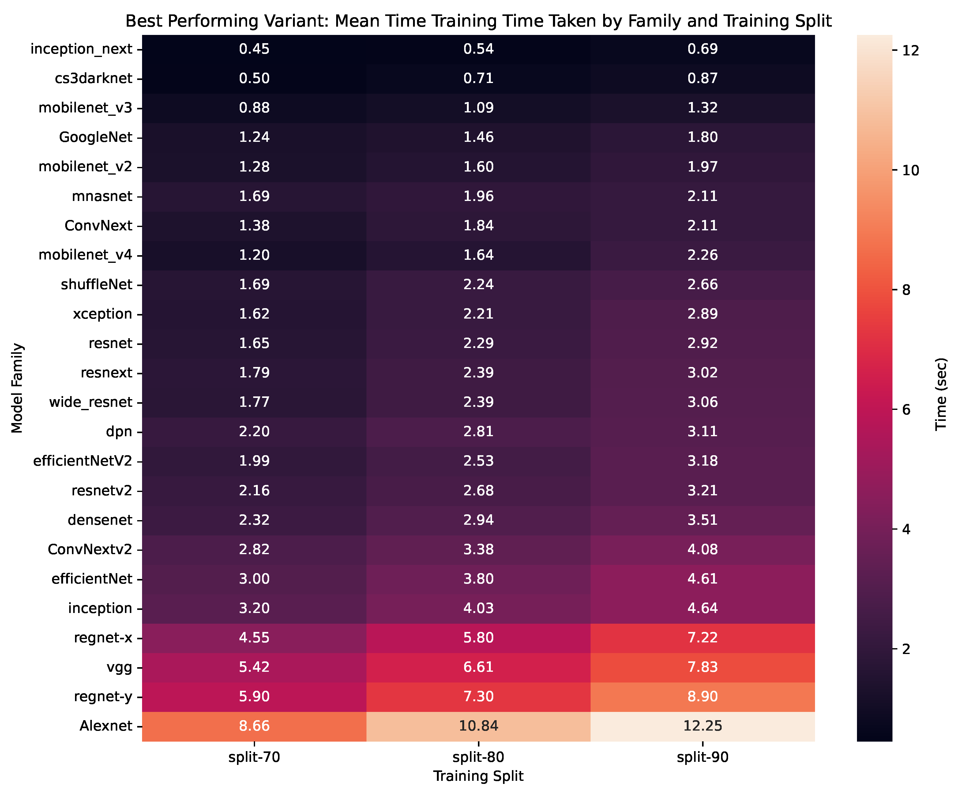 - RQ-2: How do the evaluated CNN models compare in terms of computational efficiency, including training time, inference time for a single image, and FLOPs?