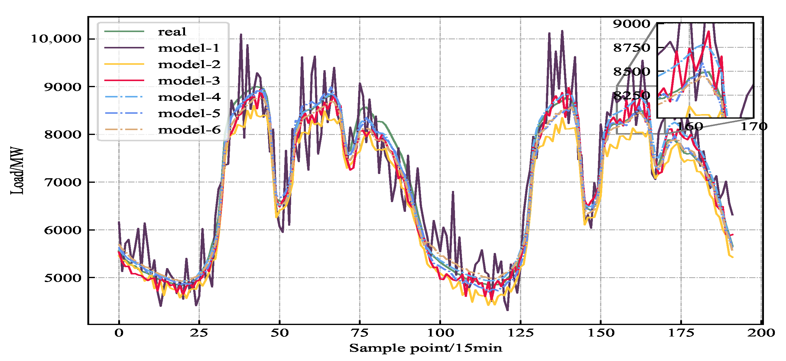 - Liu, X.; Song, J.; Tao, H.; Wang, P.; Mo, H.; Du, W. Quarter-Hourly Power Load Forecasting Based on a Hybrid CNN-BiLSTM-Attention Model with CEEMDAN, K-Means, and VMD. Energies 2025, 18, 2675. [Google Scholar] [CrossRef]