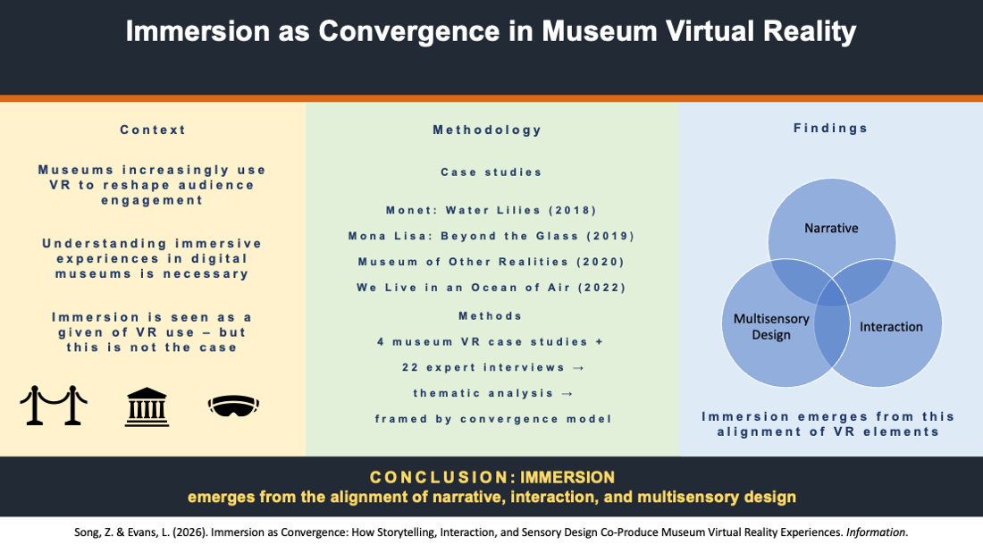 Song Z, Evans L. Immersion as Convergence: How Storytelling, Interaction, and Sensory Design Co-Produce Museum Virtual Reality Experiences. Information. 2026; 17(1):75. https://doi.org/10.3390/info17010075
