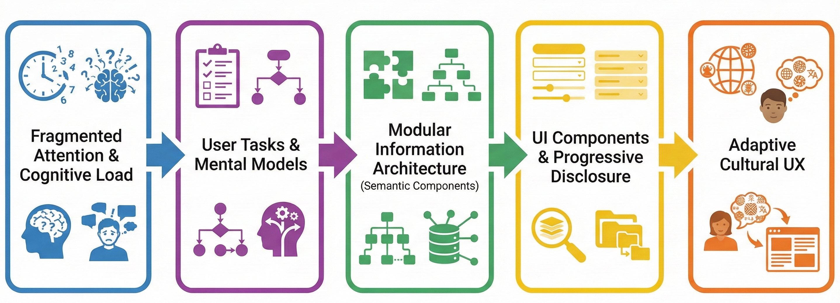 - User-centered Navigation and Findability: alignment with mental models, intuitive labels, and multiple entry points [10].