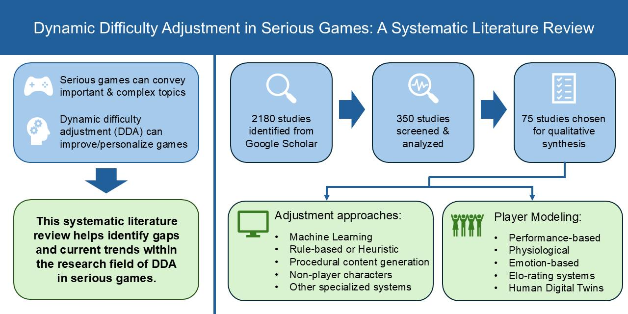 - The publication must discuss the use of DDA in SGs in particular. Literature discussing DDA in entertainment games was excluded.
