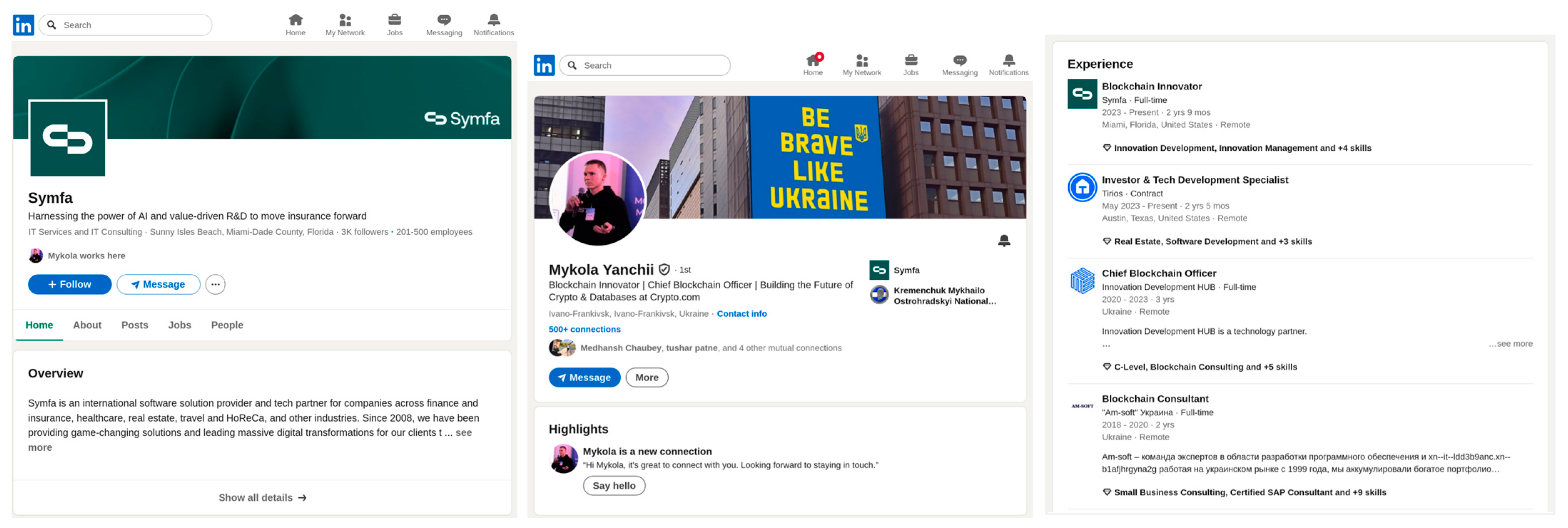 This study documents a real-world case involving an advanced manipulation tactic in which a developer was contacted by the company Symfa, which maintained an active corporate page on LinkedIn featuring posts about blockchain and digital transformation in the real estate sector, multiple connected employees and professional branding. The initial contact was made via a private message from Mykola Yanchii, who introduced himself as the Chief Blockchain Officer (CBO) of the company, in the context of a job offer to collaborate on the development of a platform called BestCity (Figure 2).