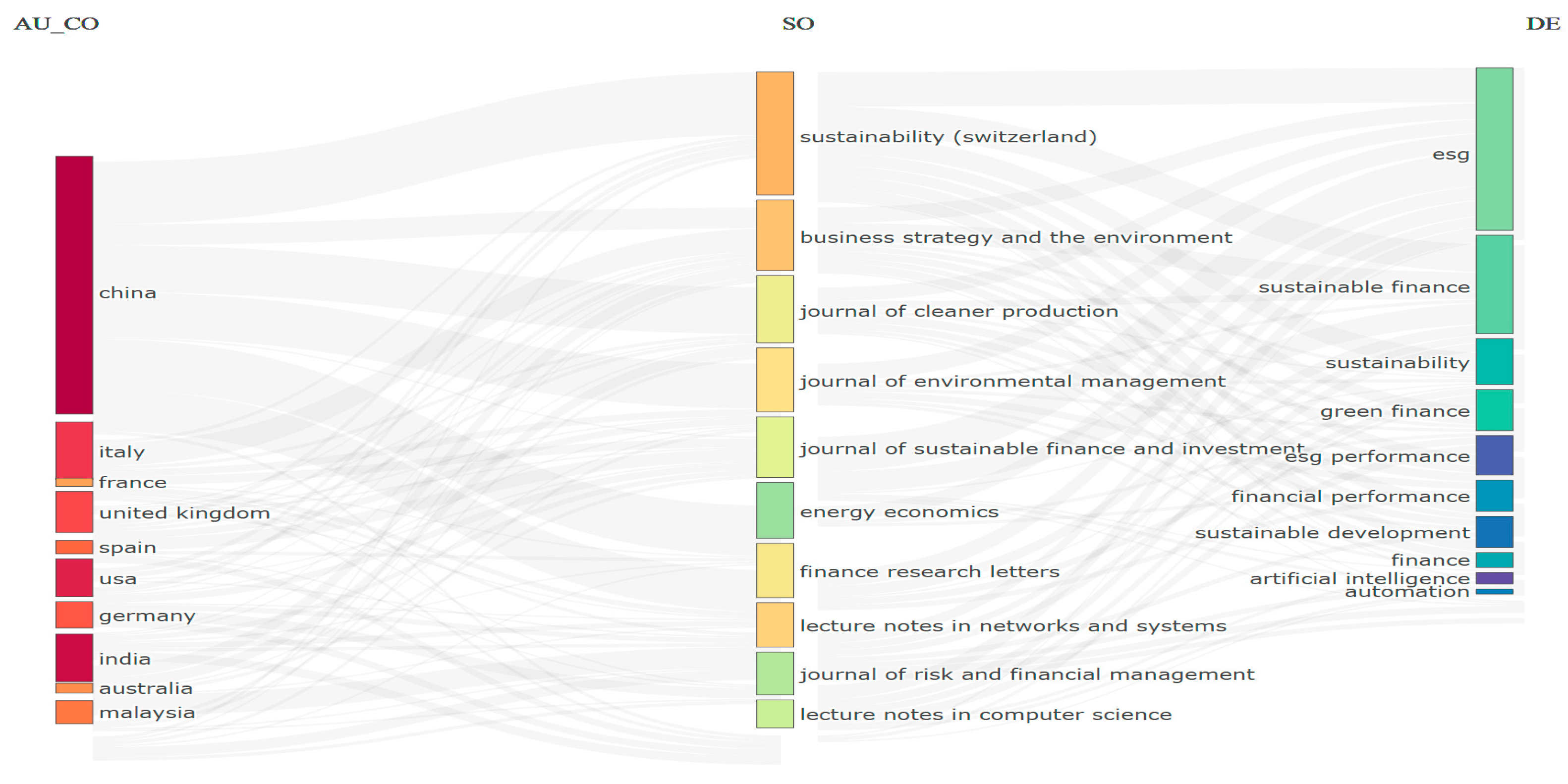 Results based on Scopus data are similar and underscore these countries’ intensified efforts to analyse, study, and research the impact of automation on financial efficiency and achieving ESG objectives.