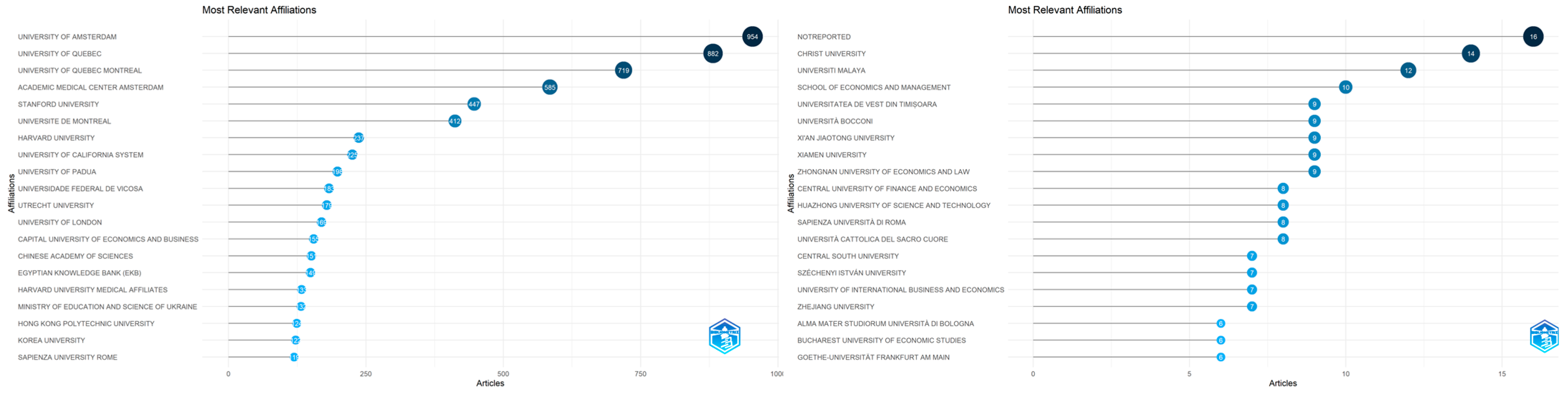 For example, there are collaborations between universities in India, China, Japan, Romania, the Netherlands, and Canada. Additionally, there has been a trend toward collaborations with at least regional impact between these research institutions (e.g., Excelia Business School and Bucharest University of Economic Studies; University of Oxford and Goethe University Frankfurt; and University of Padua and National University of Singapore), as revealed by Web of Science and Scopus analyses.