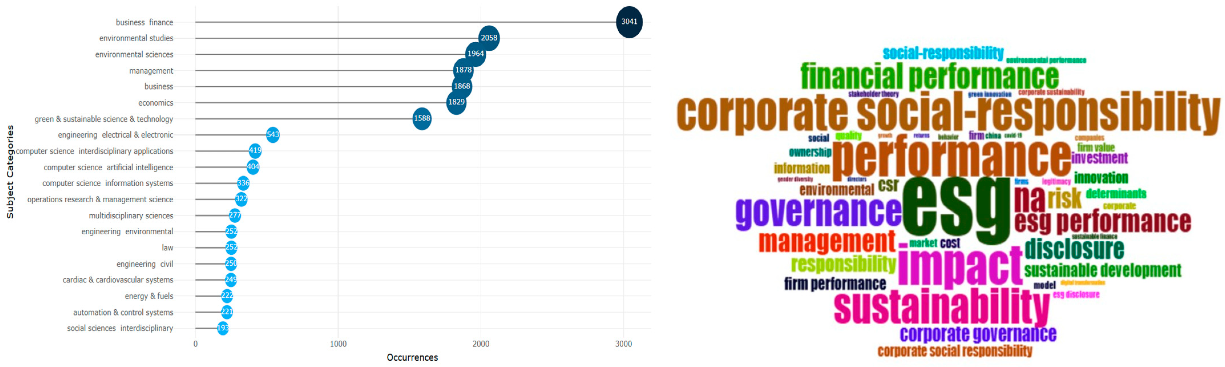 The main objective of this study is to provide a bibliometric analysis demonstrating possible theoretical associations between financial and technical fields and sustainability research in terms of adopting and applying ESG criteria. At the same time, the field of ESG has numerous effects on a company’s long-term growth, including identifying opportunities for sustainable growth, improving business strategies and financial results, enhancing the company’s reputation, and promoting economic development.