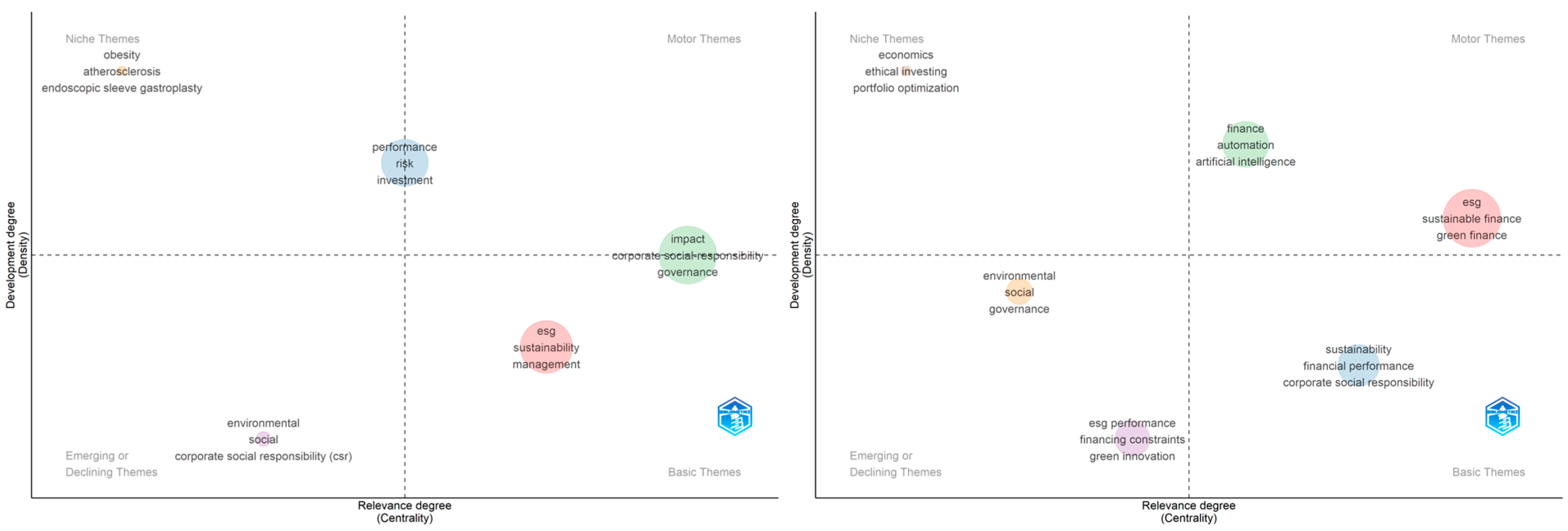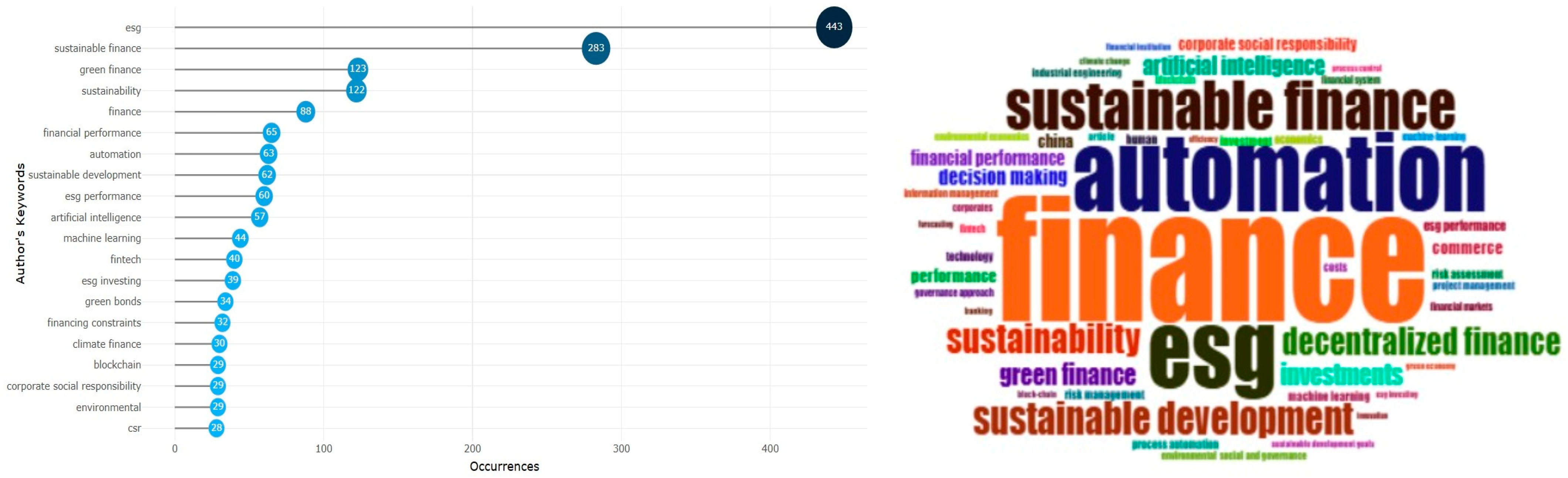 The methodological contribution of the study does not lie in the introduction of new bibliometric tools, but in their integrative use to simultaneously analyse the intersection between digital finance, automation, and ESG, an approach that is lacking in the existing literature.