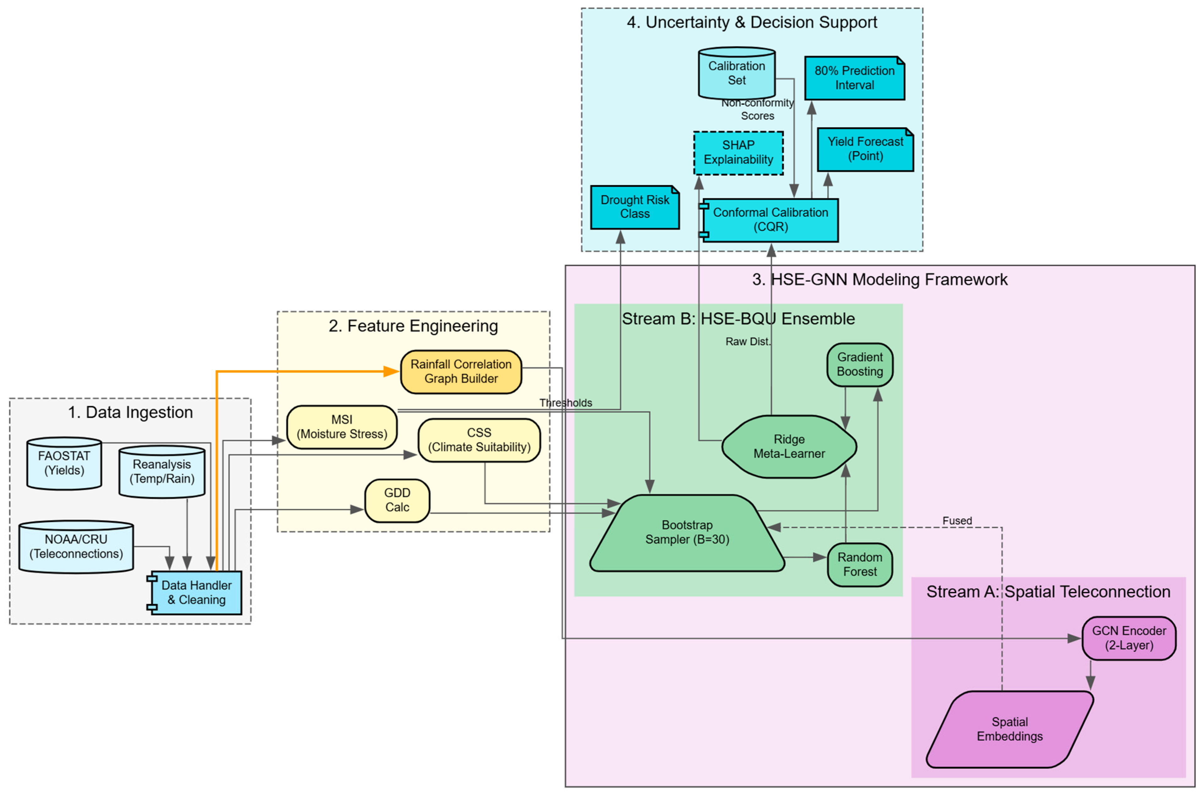 Mahmood, S.; Hasan, R.; Ahmad, S. HSE-GNN-CP: Spatiotemporal Teleconnection Modeling and Conformalized Uncertainty Quantification for Global Crop Yield Forecasting. Information 2026, 17, 141. https://doi.org/10.3390/info17020141