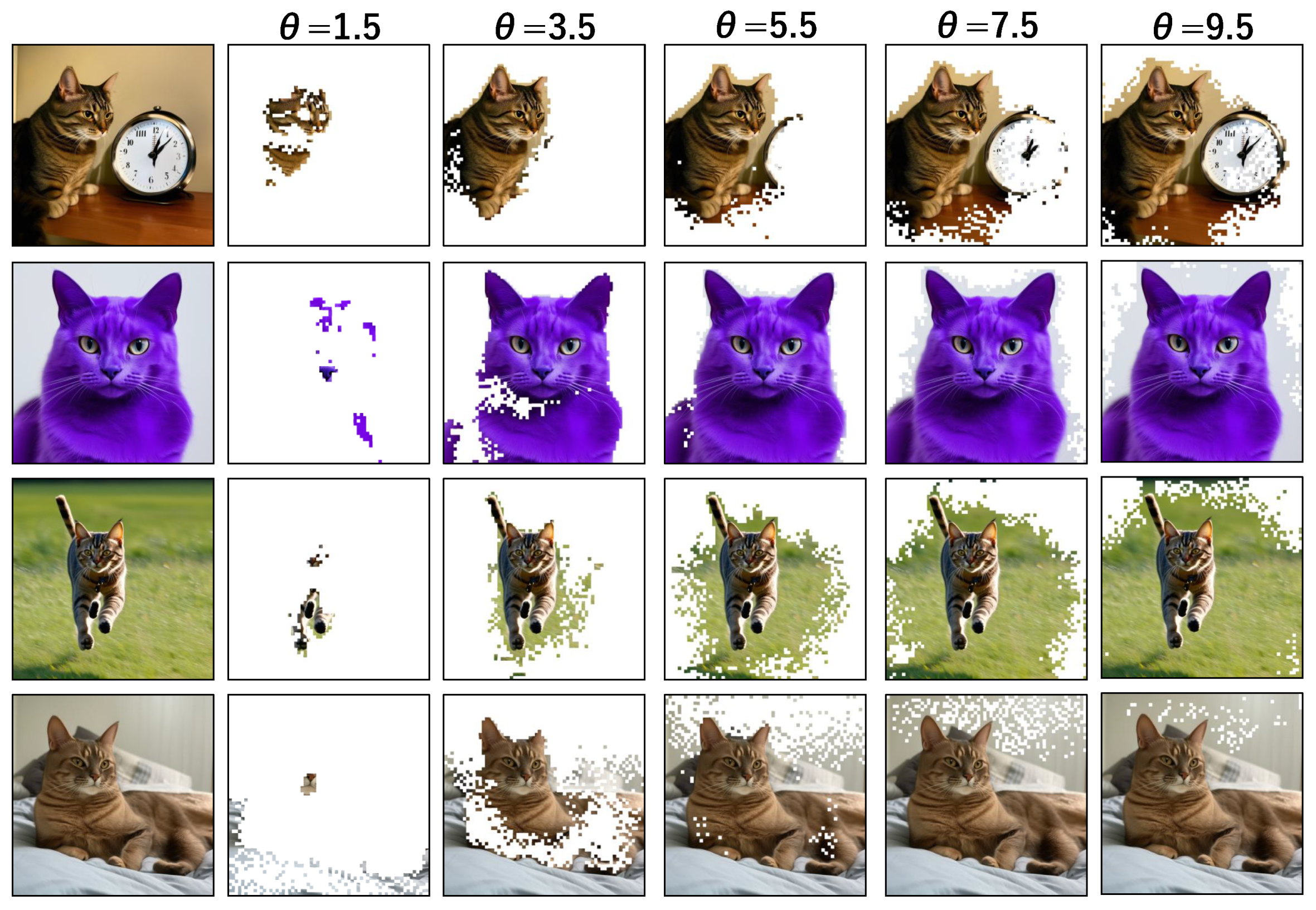 To evaluate the ability of the models to associate actions with objects, we used the set to construct prompts. To avoid unnatural prompts, the object set was restricted to = {‘bird’, ‘cat’, ‘horse’, ‘elephant’, ‘giraffe’, ‘person’}. Specifically, two types of prompts were considered: “an image of ” and “an image of and ,” where and . For the first prompt type, we generated 66 text prompts (including 35 unrealistic prompts such as “An image of a talking giraffe,” and 31 realistic prompts), yielding 660 images by changing the random seed . For the second prompt type, we randomly sampled 600 images each from the images generated by SD1.4 and SD2 and 300 images from those generated by SD3.5, all drawn from the realistic prompts.
