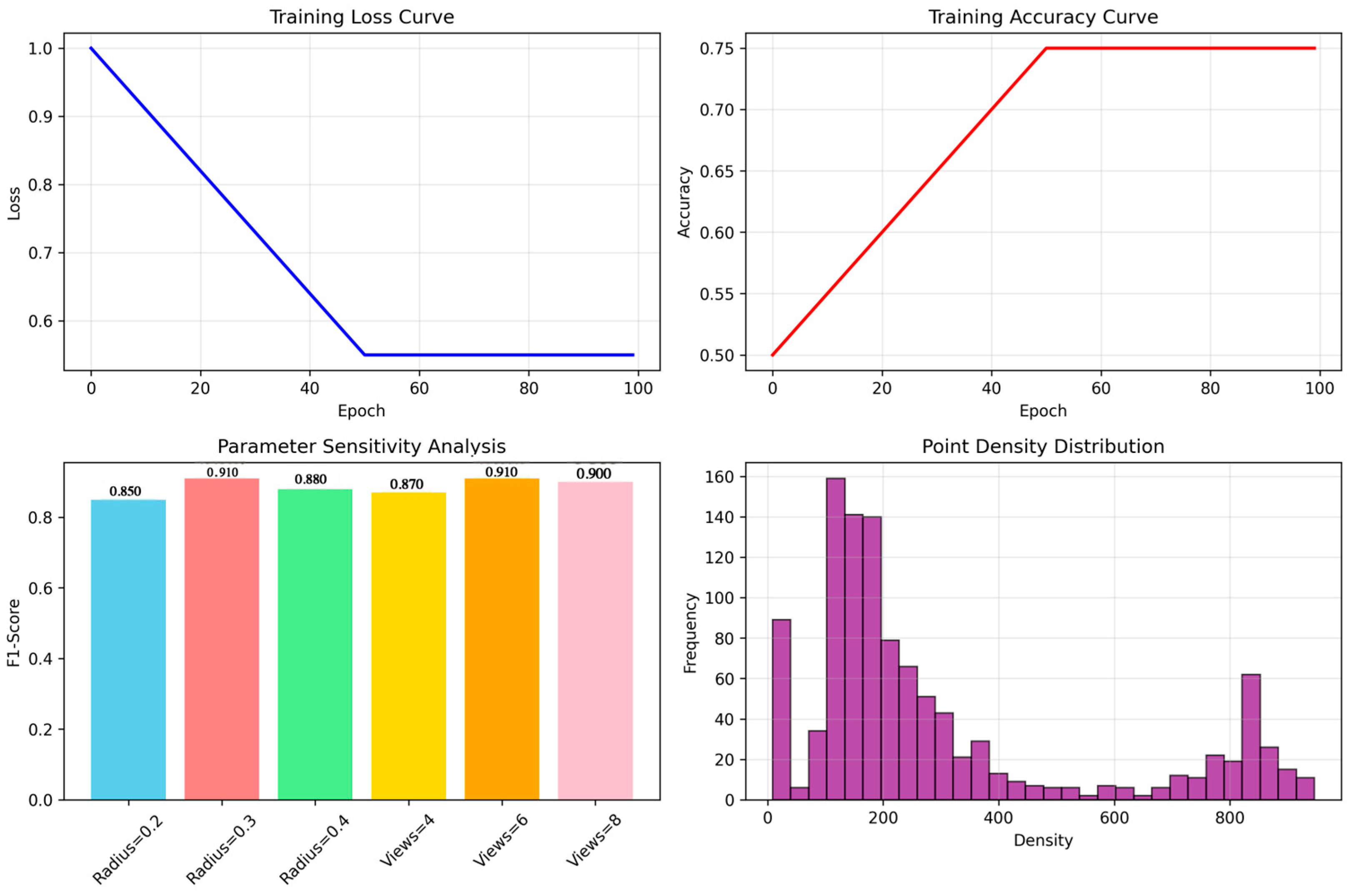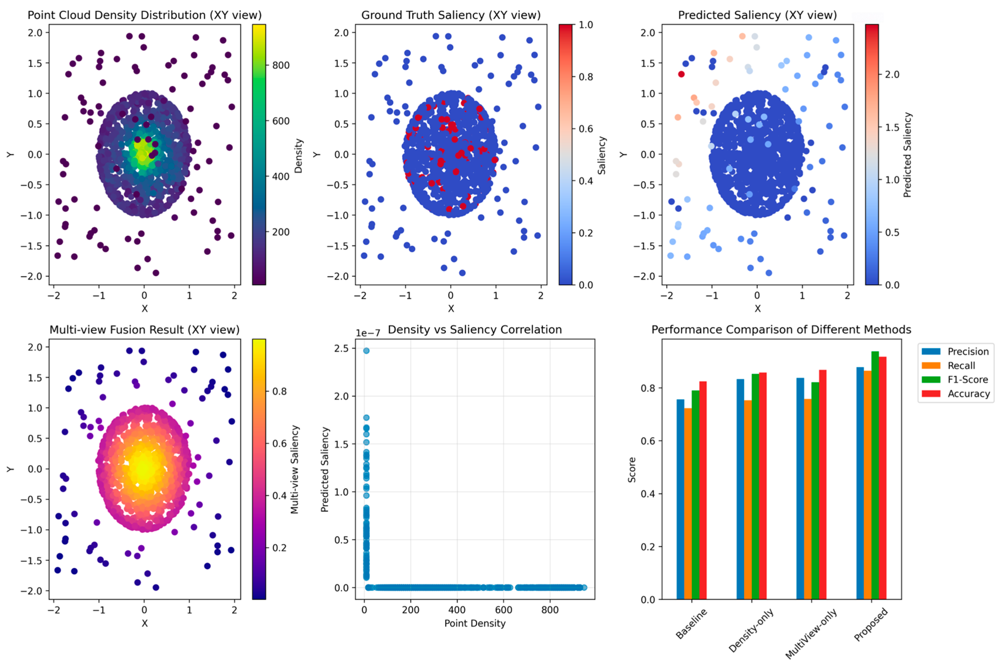 Figure 8. When the point cloud density is increased from 0.1 to 0.5, the significance detection accuracy linearly increases from 73.2% to 91.5%. This fully validates the effectiveness of the density-aware loss function in