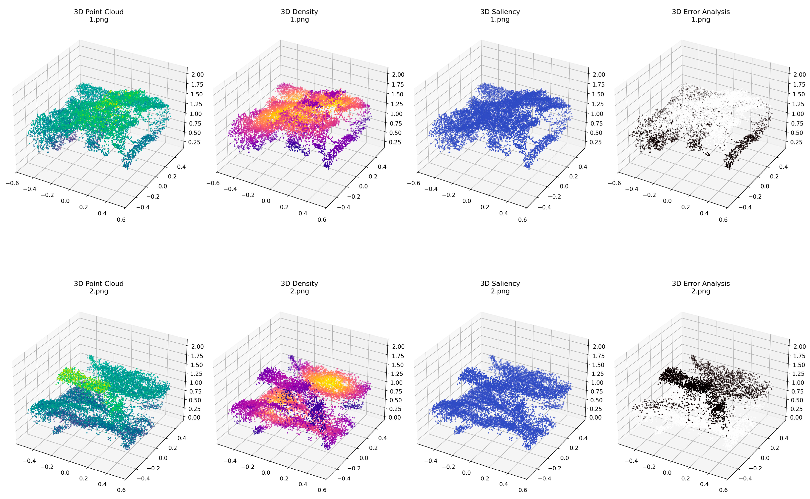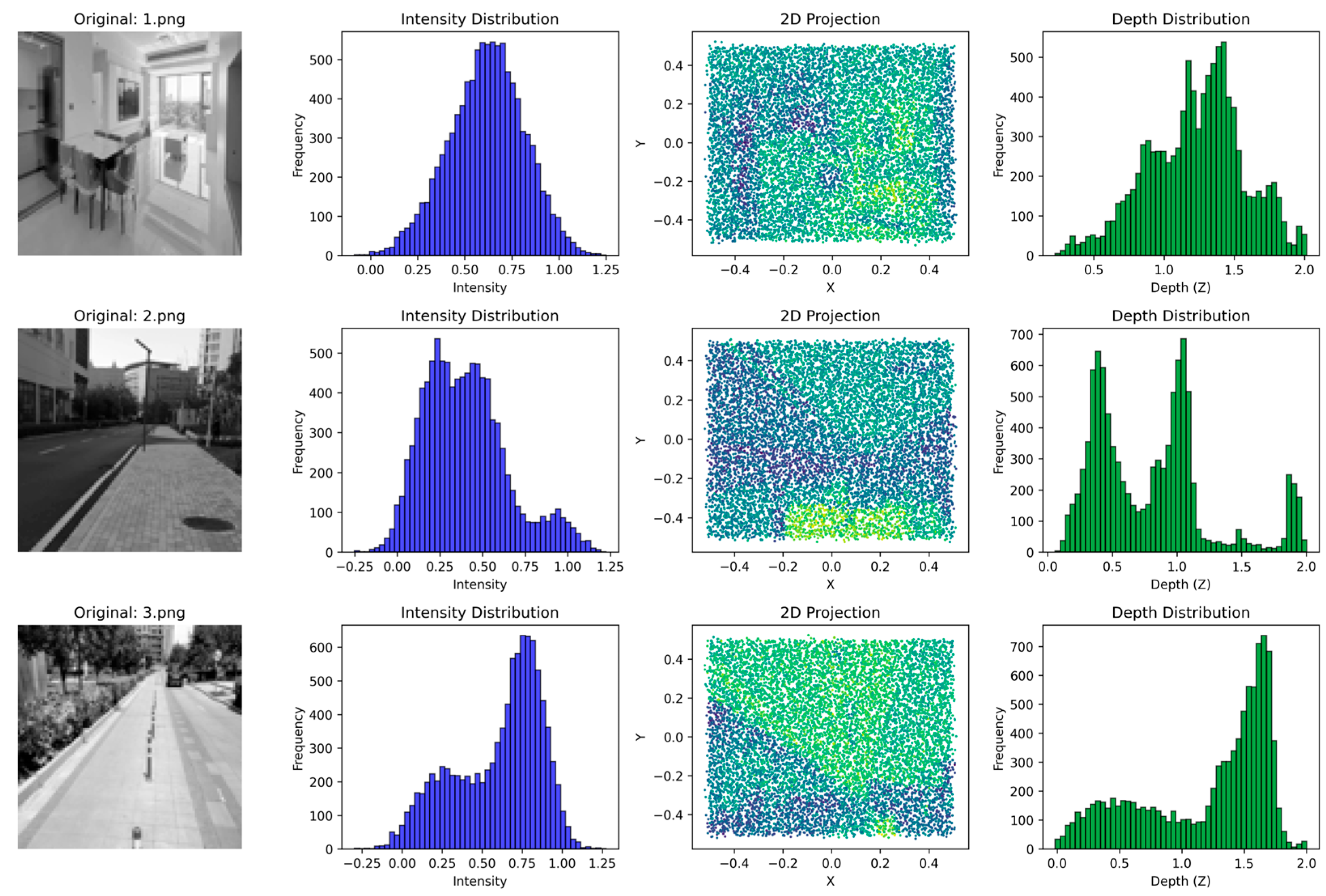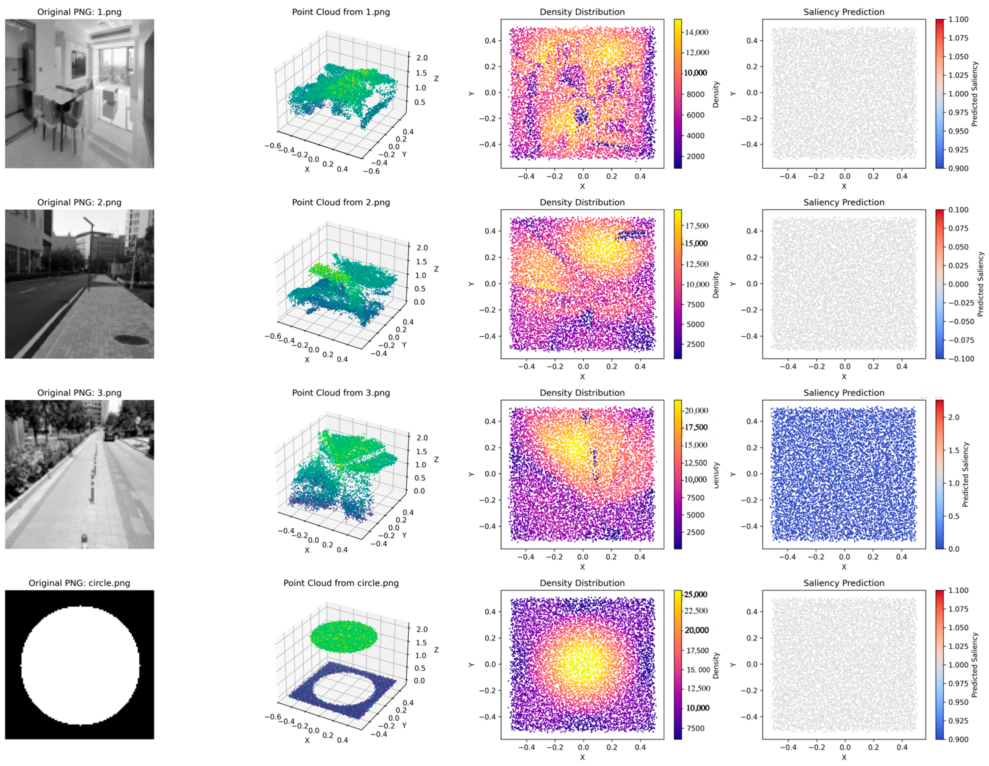 Secondly, this article analyzed the point cloud computing effect and density distribution of PNG images in different scenarios.