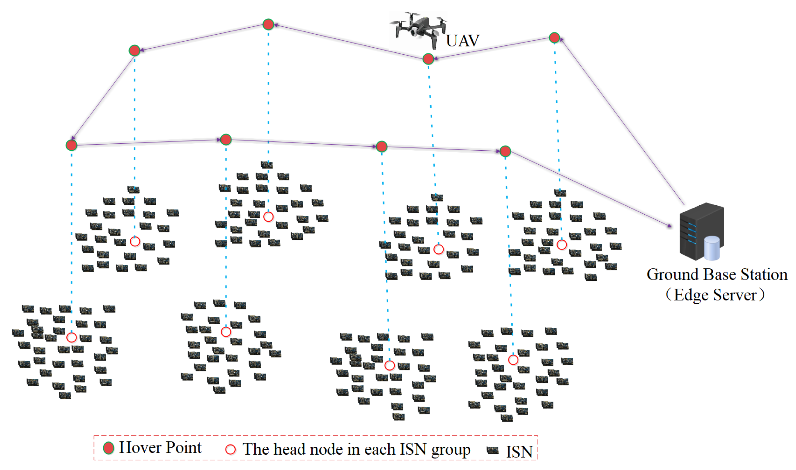 - Ma, X.; Huang, M.; Ni, W.; Yin, M.; Min, J.; Jamalipour, A. Balancing Time and Energy Efficiency by Sizing Clusters: A New Data Collection Scheme in UAV-Aided Large-Scale Internet of Things. IEEE Internet Things J. 2024, 11, 9355–9367. [Google Scholar] [CrossRef]