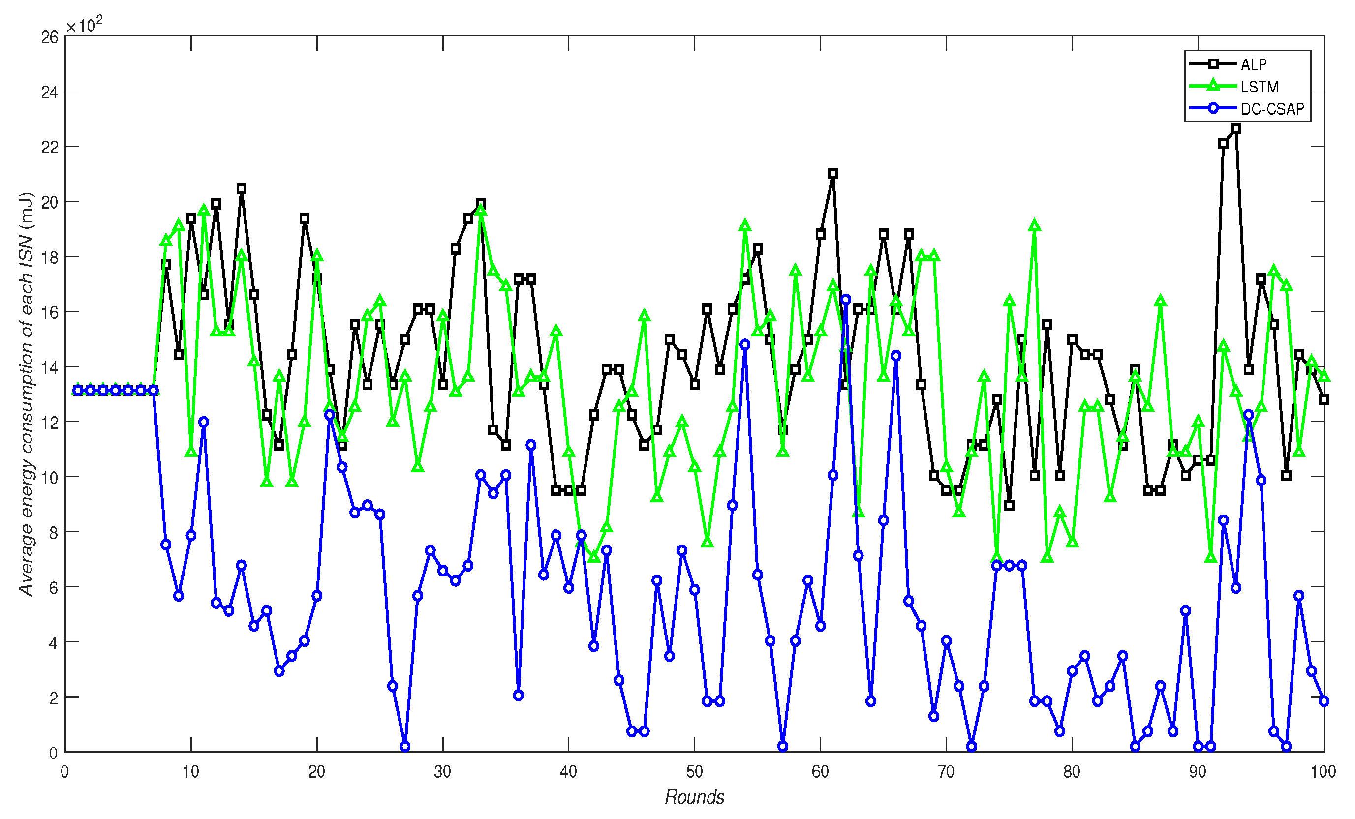 - Energy Threshold-Based Rotation Trigger: CH rotation is not a per-round operation. It is triggered only when the energy level of the incumbent CH falls below a predefined threshold (e.g., 30% of its initial energy). Given the substantial reduction in transmission load afforded by our predictive data collection mechanism, the energy depletion rate for a CH is slow. Consequently, CH rotation is a low-frequency, long-term maintenance event rather than a routine procedure.