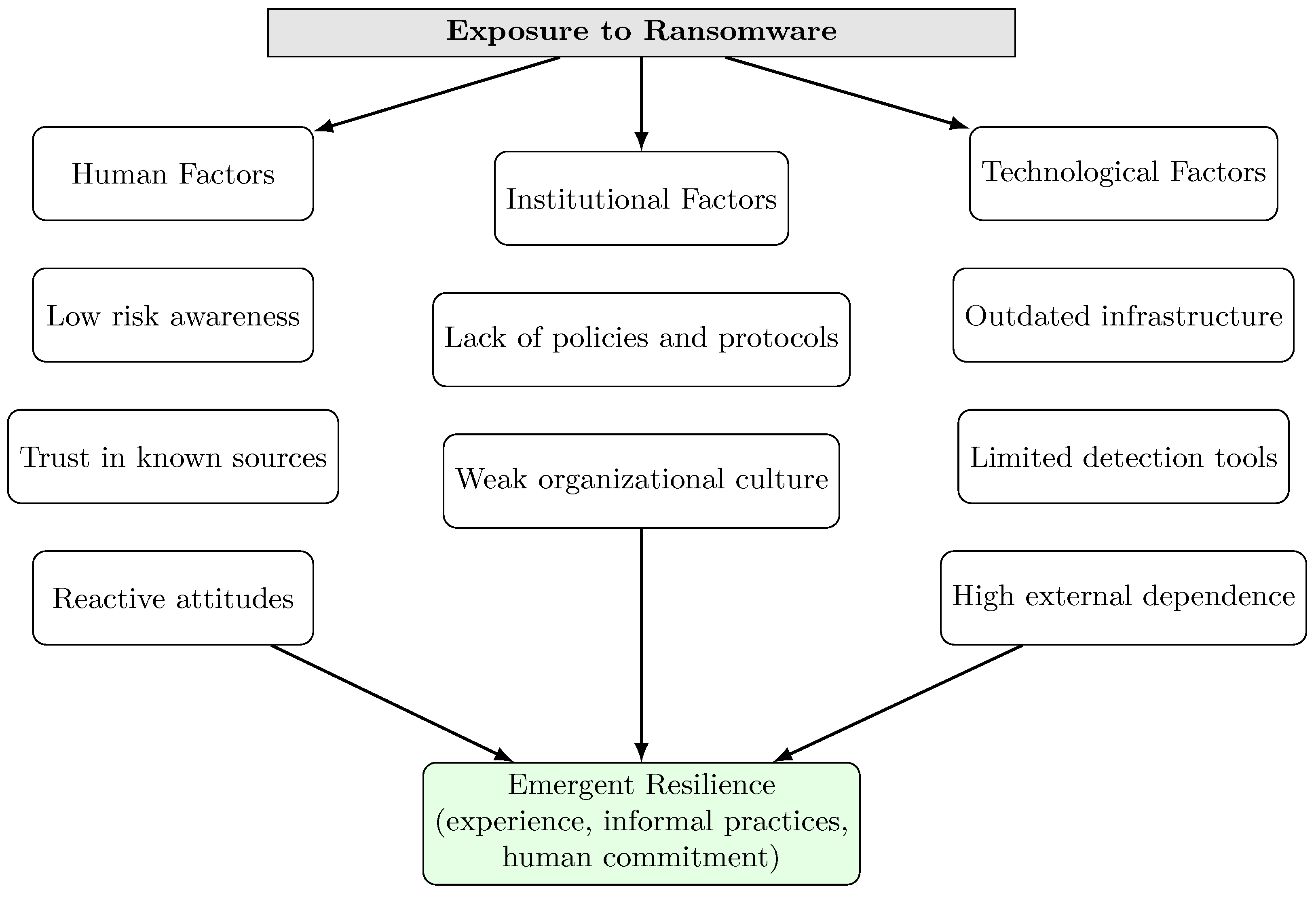 12] highlights the importance of socio-technical approaches in understanding how dynamics of vulnerability or resilience emerge in response to threats such as ransomware.