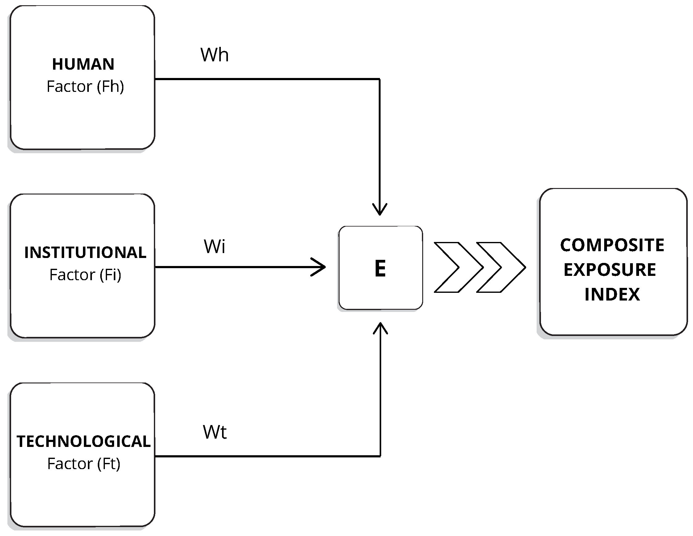 ) are not arbitrary values, but reflect the empirical distribution of human, institutional, and technology related vulnerabilities as expressed by the interviewees. Their normalized proportions provide the basis for the composite exposure index presented in Equation (