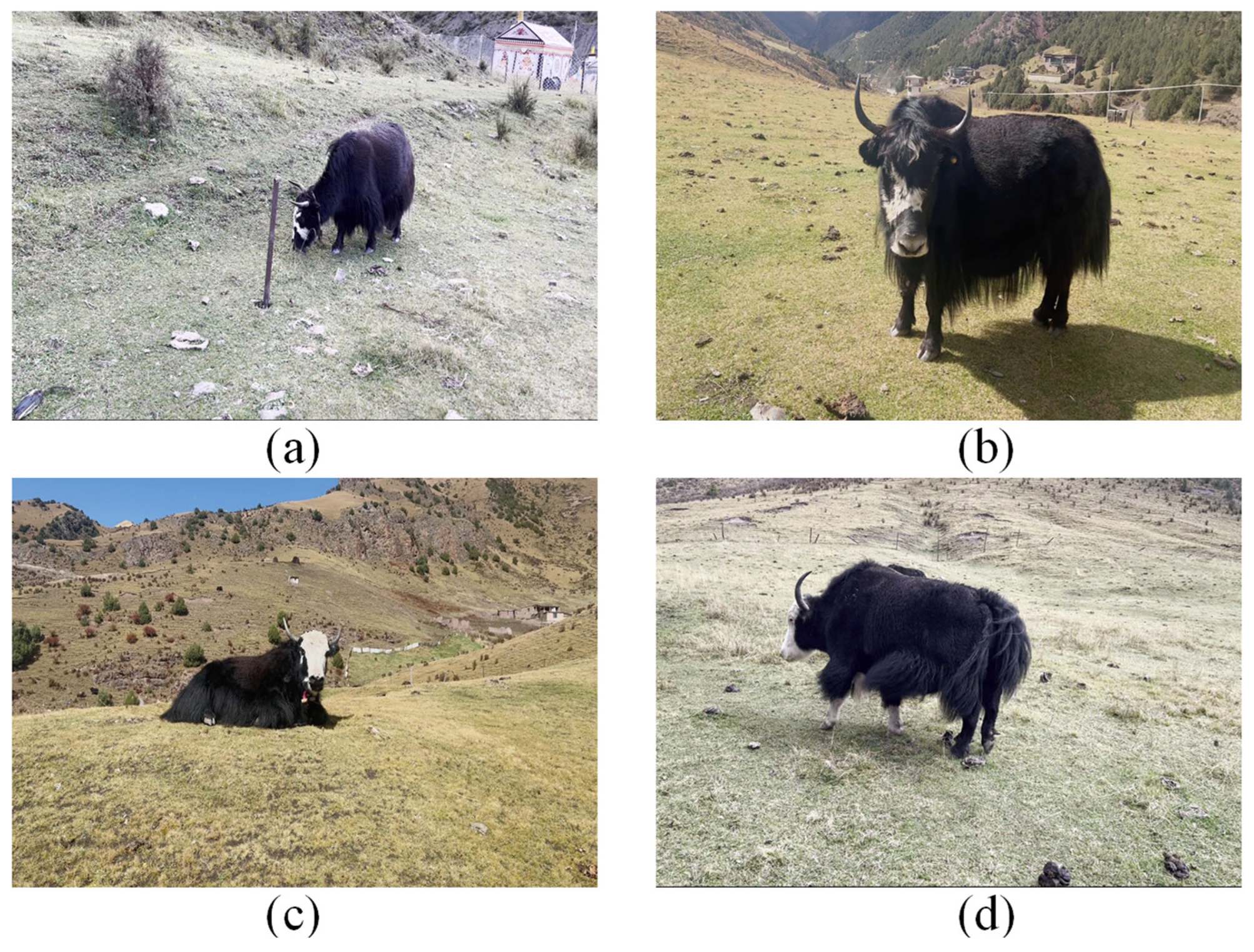 - Wang, S.; Li, C.; Song, J.; Jiang, Y. Yak Detection Algorithm Based on Faster R-CNN in Tibetan Pastoral Areas. J. Inn. Mong. Agric. Univ. (Nat. Sci. Ed.) 2021, 42, 77–83. [Google Scholar]