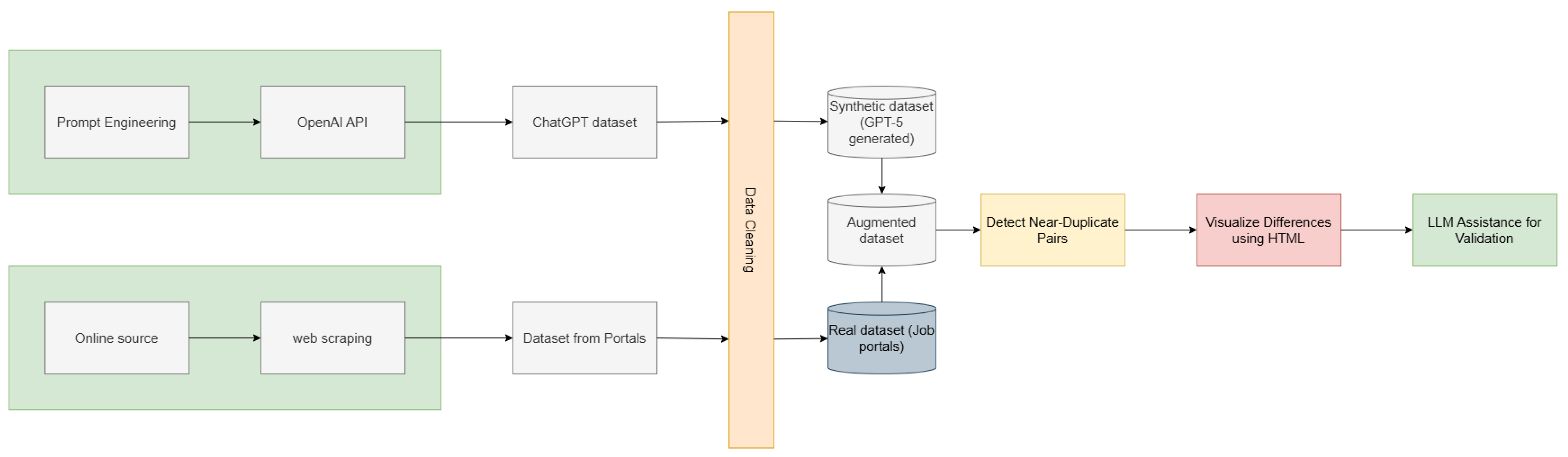 - The construction of a large augmented evaluation dataset consisting of 50,000 job postings, combining real-world and synthetically generated records to simulate realistic duplication scenarios and linguistic variability.