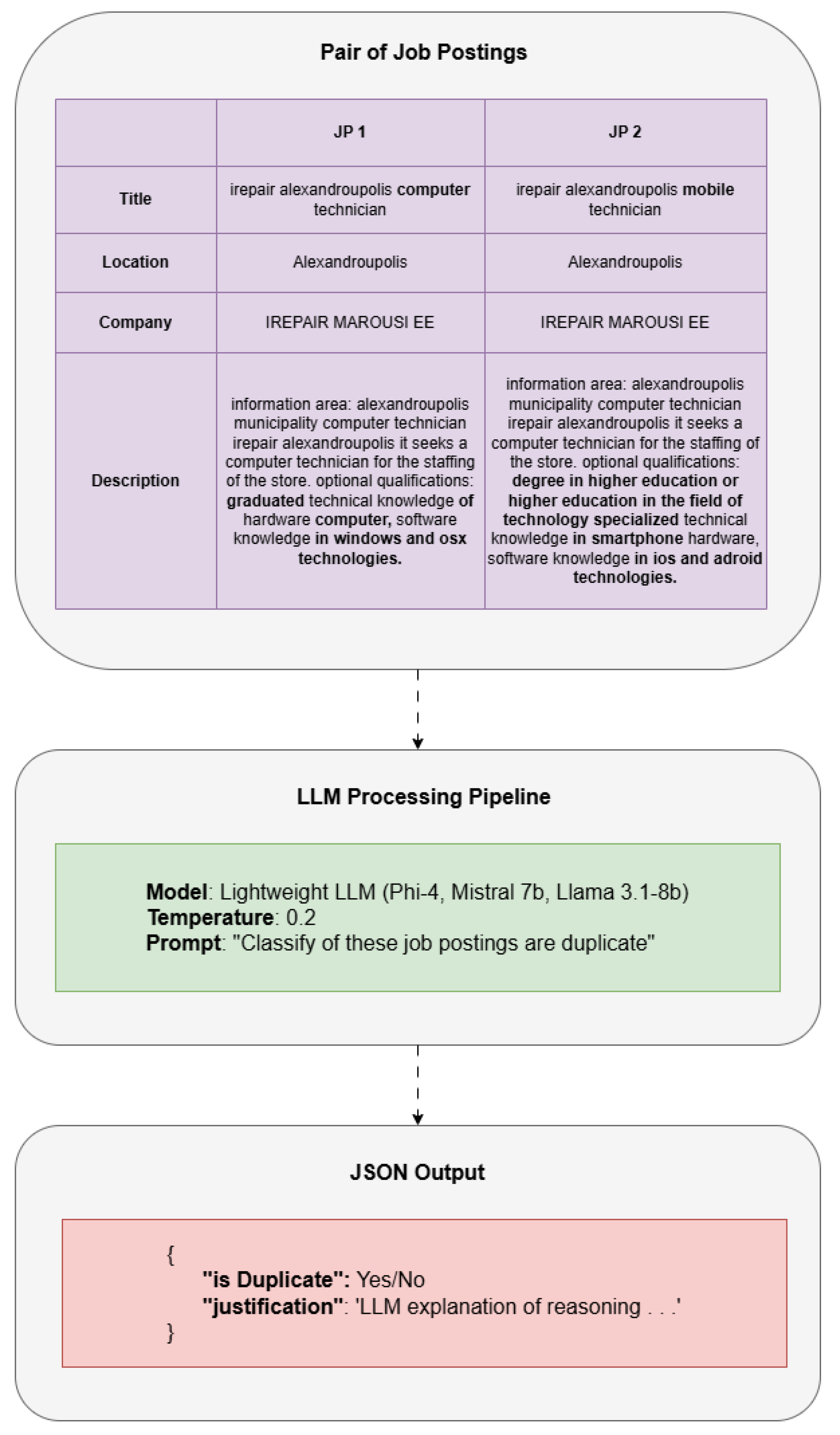 - Based on your analysis of these formatted parts, decide if the job postings represent duplicate posts of the same job or distinct opportunities.