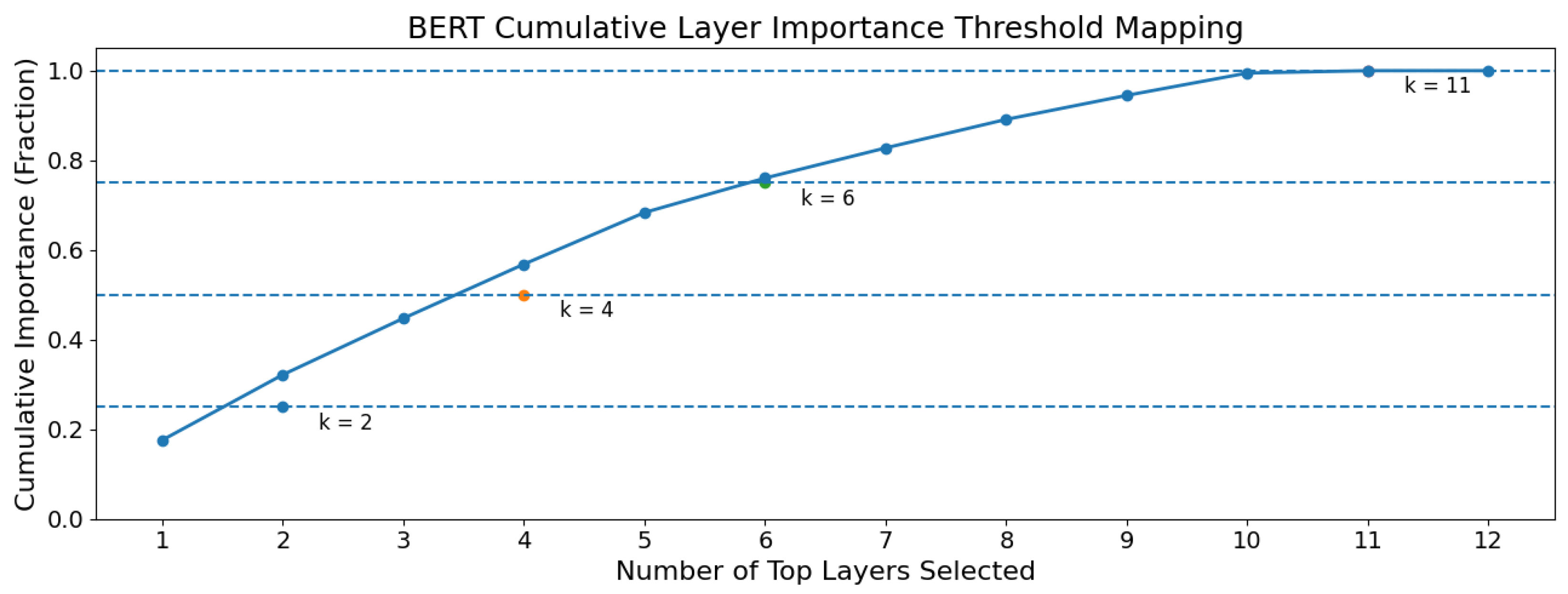 Cummulative Layer Importance Threshold Mapping for BERT.