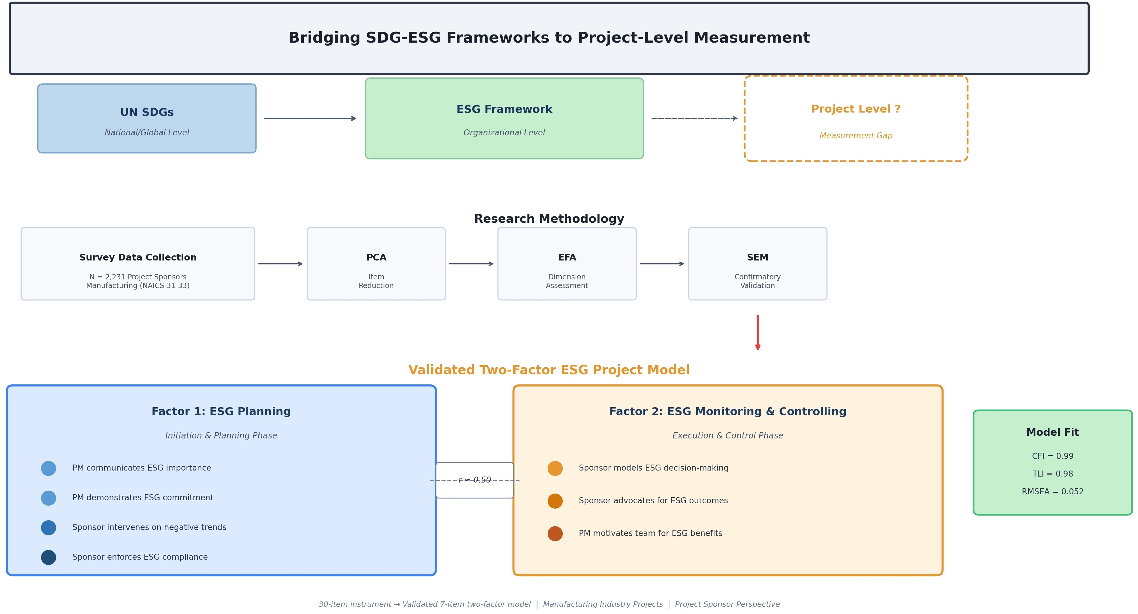 | ESG PM Planning | GV3 | The project manager intervened when ESG metrics trended negatively. | 0.872 | 0.034 | 25.812 | <0.001 | 0.68 |