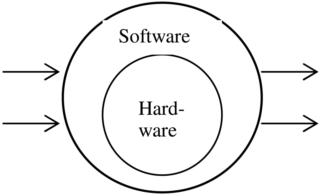 A computer consists of hardware and software. A naked machine, or pure hardware, is useless to us. We should install software for the machine, and then the system is able to process information. A user does not directly operate its memories, registers, arithmetic units and input/output devices, but controls the varieties of hardware through the man-machine interface of the operating system. In logic, the hardware is contained within the software, so the communication between man and machine or among machines is realized by computer software. Computer and robot have a same logical structure, as shown in Figure 6.