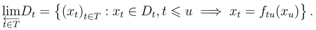 From T -indexed family of sets, {Dt}t∈T and appropriately defined functions ftu : Du → Dt, one can construct a mathematical structure called a projective system (Dt, (ftu)t≤u). ftu can be defined as: