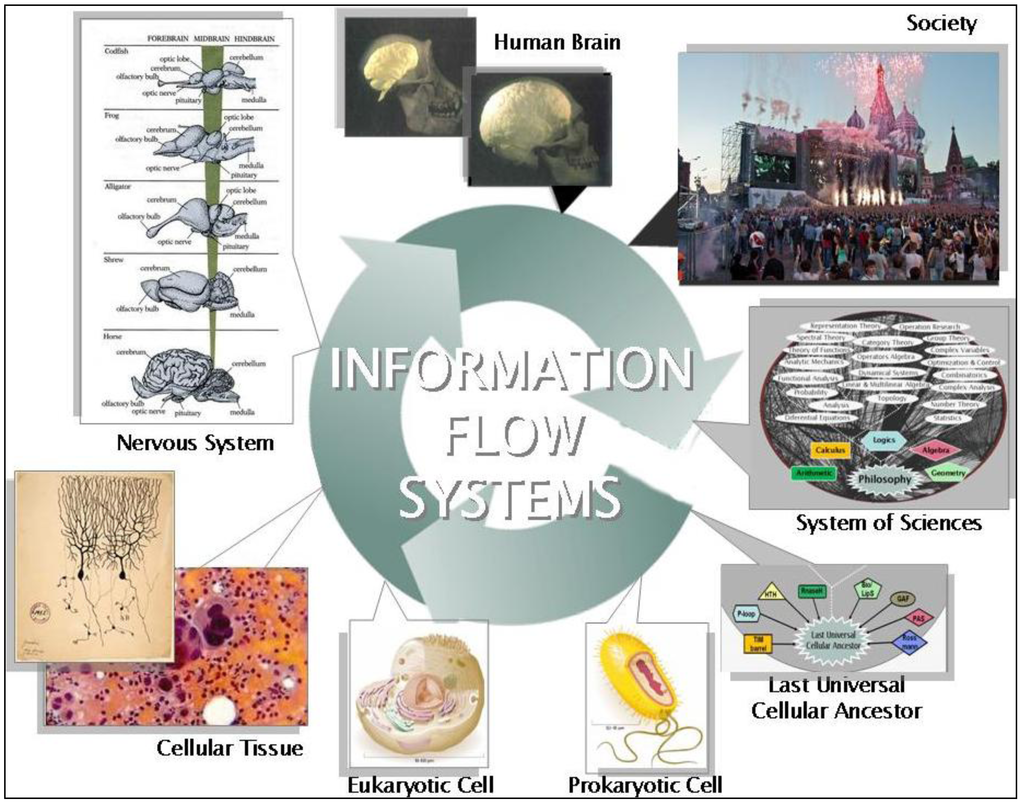 There is an essential point about the biological intertwining between communication flows, almost immaterial, and stuff flows related to self-production processes. Around the distinction and conjunction between communication and self-production flows revolve some of the most important and general characteristics of informational entities: cells, organisms, brains, societies. It is an approach that can be easily conduced to a variety of empirical, comparative studies and applied research themes. By translating the idea of the information flows to the complex societies of today, a very different panorama may be obtained about the informational limitations of the individual, the complexity growth of social organizations, and the social use of knowledge. We will deal with these matters in the sections that follow. In order to initiate properly the discussion we must first draft the new conceptions proposed about information.