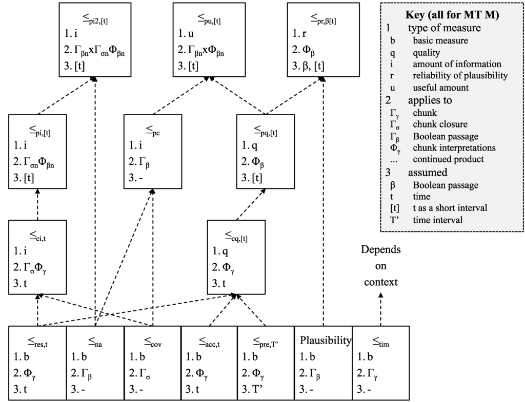 The amount of information is a term that combines measures of chunks, the number of assertions and interpretations. If we include quality we can consider the “useful” amount of information. The order ≤pu,[t] defined in Table 3 includes these elements (although it uses ≤pc rather than ≤pi2,[t] because resolution is already taken into account in ≤pq,[t]).