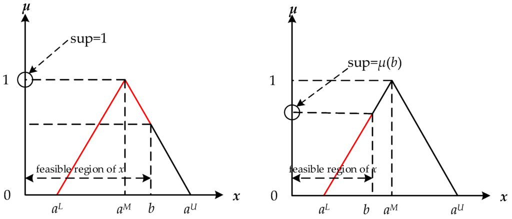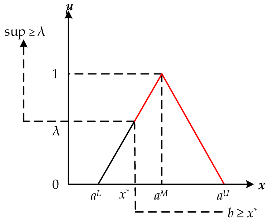 We consider a general triangular fuzzy number where >>>0, let denote its membership function whose expression is as Equation (20).