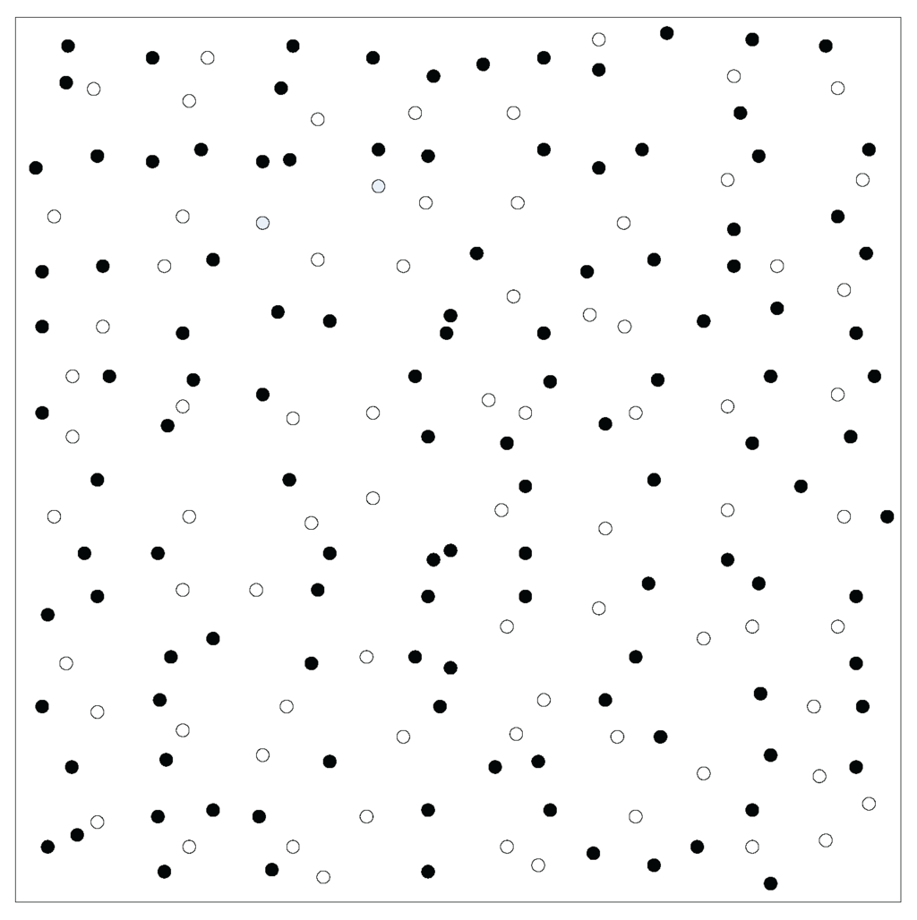 - The node is classified by whether it will forward other transmission. As shown in Figure 1, if a node will forward other transmission, we define the node as an altruistic node (AN, empty points in Figure 1). Otherwise the node is a Selfish Node (SN, solid points in Figure 1). In this work, we assume each node may be selfish, and define the probability that a node i will forward other transmission as . For simplicity, we assume the probability that each node forwards other transmission is .