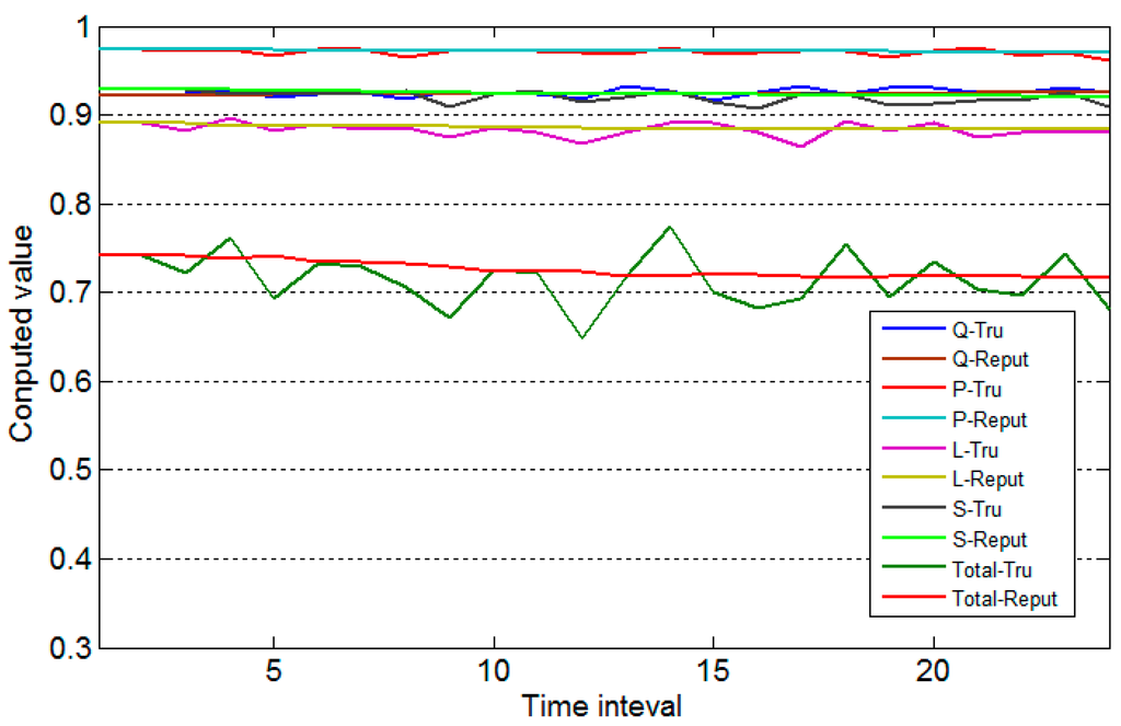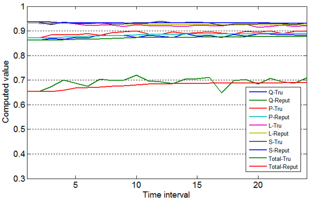 | Time Interval | Q-Tru. | Q-Reput. | P-Tru. | P-Reput. | L-Tru. | L-Reput. | S-Tru | S-Reput. | Total-Tru | Total-Reput | |