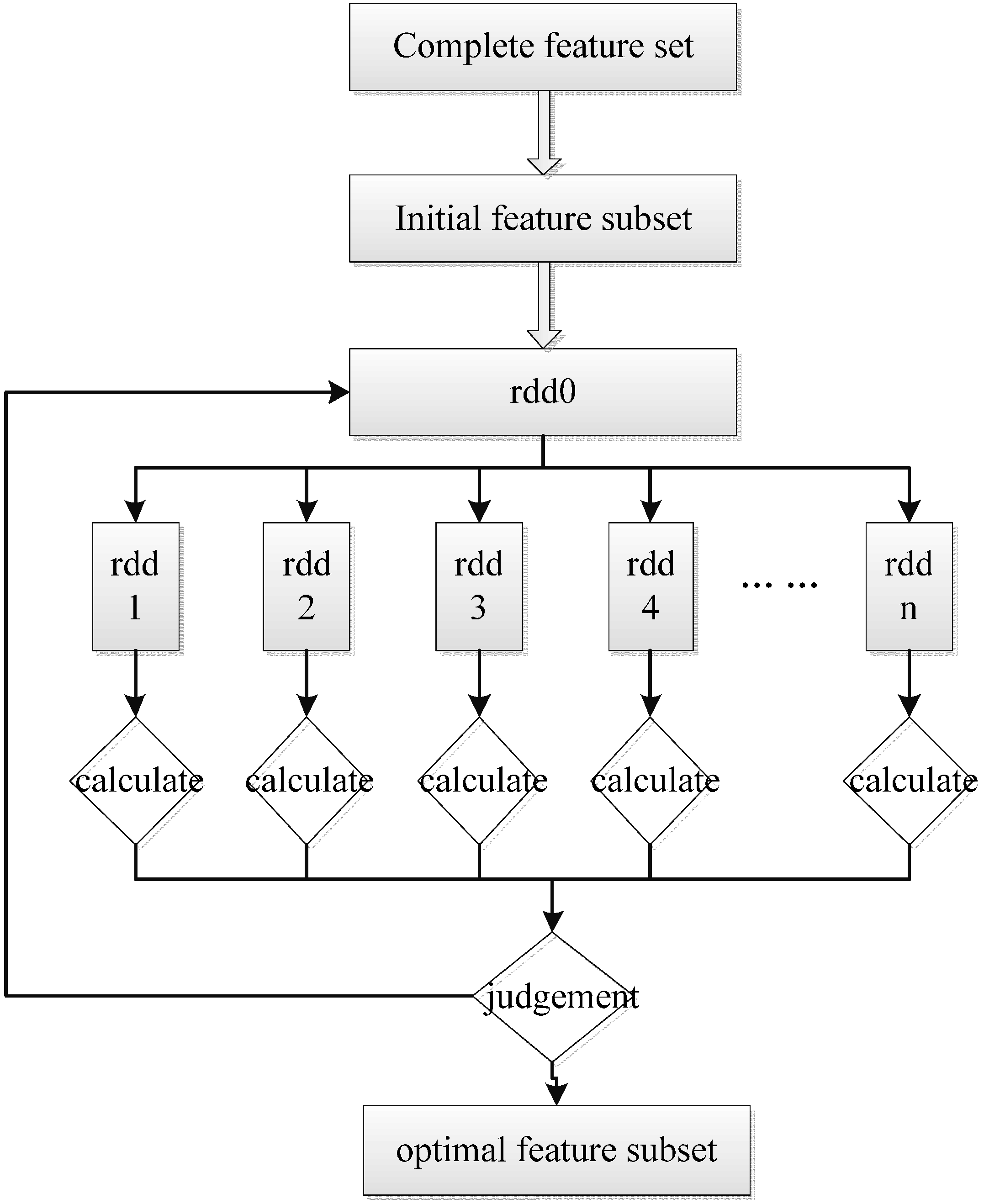 With the data scale increasing rapidly, how to carry out the feature selection for big data becomes a critical issue. Appropriate and novel designs for highly parallel low-cost architectures promise significant scalability improvements [13]. The feature selection and traffic classification systems must be redesigned to run on multicore hardware, targeting low-cost but highly parallel architectures [14]. At first, the Hadoop-MapReduce framework had become a research focus. Sun et al. [15] introduced the joint mutual information method into the feature selection. The high efficiency and expansibility of the method was tested by experiments. Based on the cloud model, Li et al. [16] proposed an improved method of SVM-BPSO feature selection, in which the wrapper evaluation strategy was adopted, and the local optimal solution was achieved with a faster convergence rate, and a better result was thus obtained. Long [17] parallelized and improved the feature selection method using the Hadoop-MapReduce framework to enable it to deal with large-scale data. However, Srirama et al. [18,19] pointed out that the MapReduce model was suitable for processing jobs with large amounts of data but uncomplicated computing. In order to deal with the complex iterative computations, the MapReduce model had lower execution efficiency. Spark [20] is a new-generation parallel-computing framework based on memory, which performs better than MapReduce in the iterative computation. Currently, there are limited research outcomes on Spark in the field of feature selection of network traffic. This paper puts forward a feature selection method for network traffic based on Spark and investigates its performance and effect.