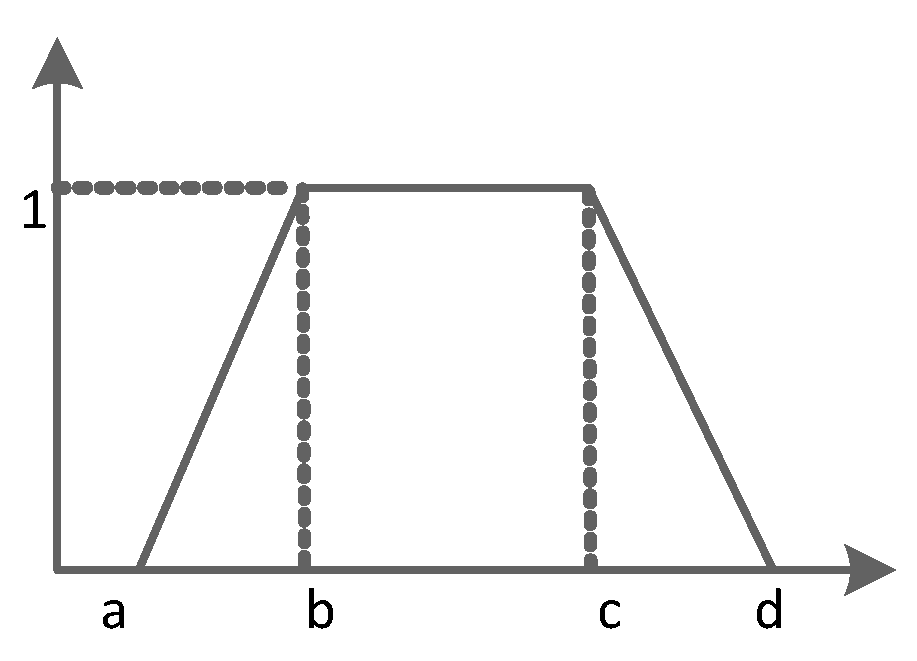 A trapezoidal fuzzy number can be defined as , where . The corresponding membership function of is shown in Figure 1,