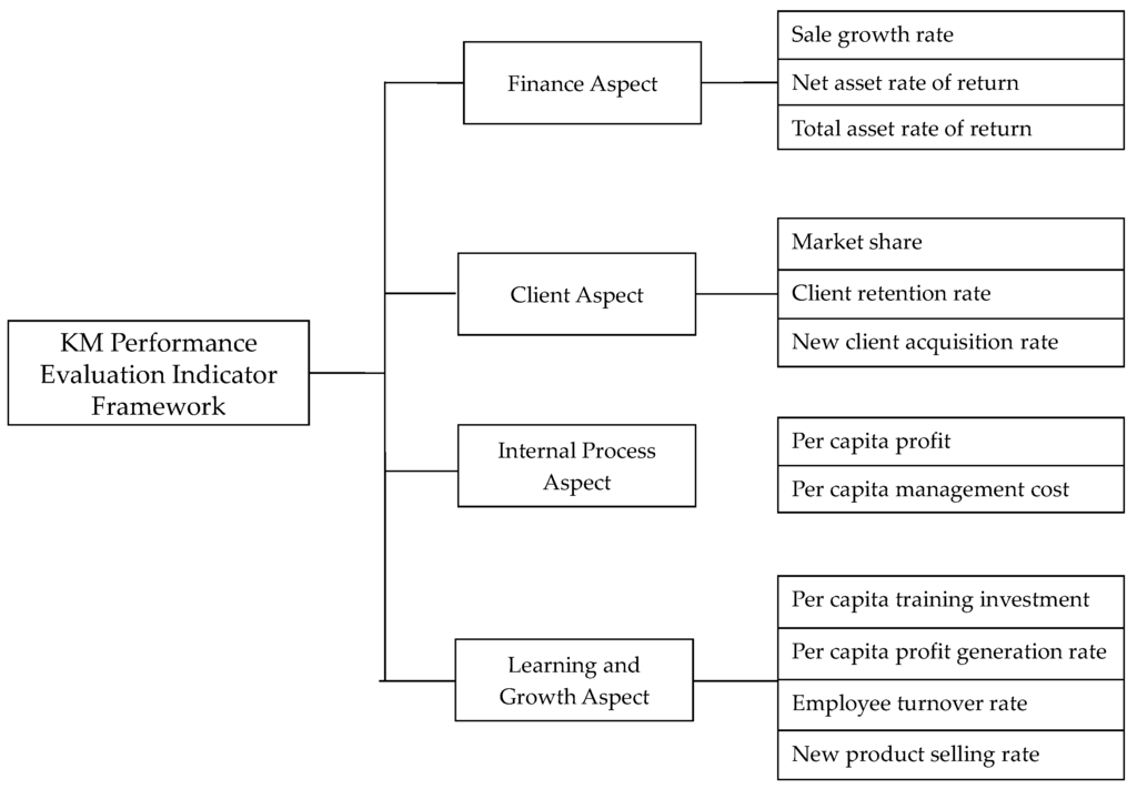 KM performance evaluation, as an indispensible component of KM, plays a pivotal role in the entire process of KM []. An effective evaluation of KM performance will allow managers to understand the deficiencies in their management practices, identify the key elements impacting organizational development, and provide theoretical evidences for continuous improvement.