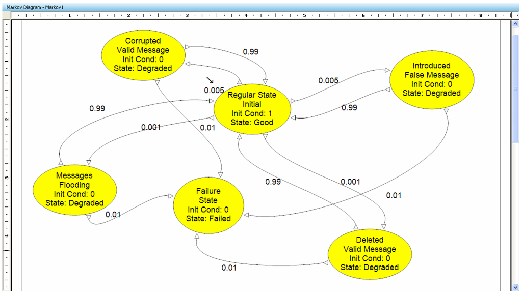 - Markov chains are an effective tool for modeling degradation of services due to security threats, and allow for an efficient assessment of security in cases when probabilities of state transitions can be reasonably determined;