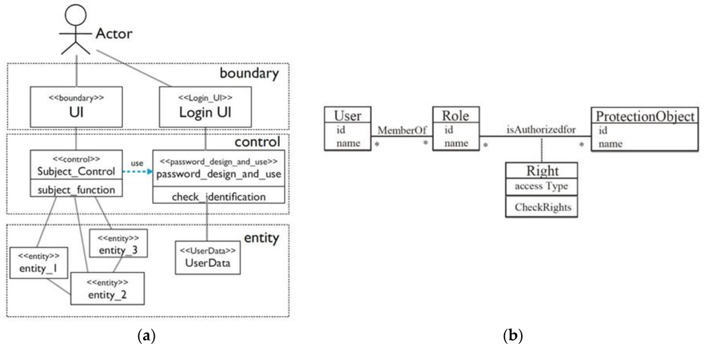 - Lodderstedt, T.; Basin, D.A.; Doser, J. SecureUML: A UML-Based Modeling Language for Model-Driven Security. In Proceedings of the 5th International Conference on the Unified Modeling Language (UML), Dresden, Germany, 30 September–4 October 2002; pp. 426–441.