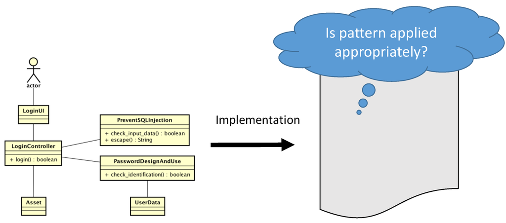 - Implement a design.Although the pattern application cannot be verified, the intended design for the security design pattern can be implemented.