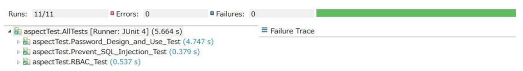 Montrieux et al. presented a tool that generates Java and AspectJ code from a UML model with a verified UMLsec property [35]. Although the tool can be utilized for testing at the implementation level, it handles only RBAC as the target security design pattern, enforcing the security property to be checked. In our method, developers can register and handle various security design patterns to be tested.