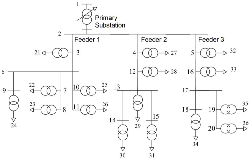- Viawan, F.A.; Sannino, A.; Daalder, J. Voltage control with on-load tap changers in medium voltage feeders in presence of distributed generation. Electr. Power Syst. Res. 2007, 77, 1314–1322. [Google Scholar] [CrossRef]