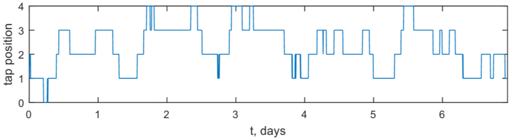 The schedule of the tap changer switching on the main substation with SSVC is shown in Figure 5.