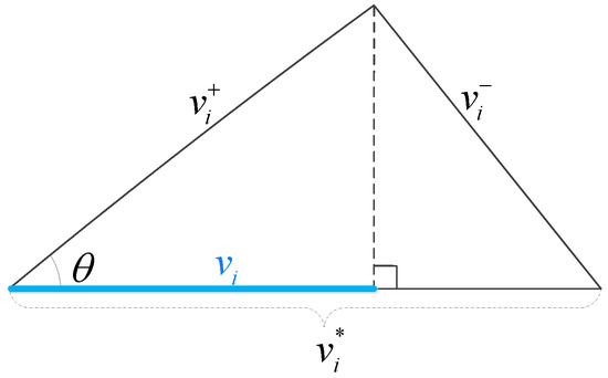 For an alternative, a considerably large value of projection onto PIS means that the alternative is substantially close to PIS; thus, the alternative will be significantly optimal and vice versa. Therefore, to comprehensively consider both the projections onto PIS and NIS, we use a relative closeness to PIS (i.e., prospect projection value ) to rank the alternatives. Let be the angle between and . Using the law of cosines (see, Figure 3), we obtain that . Thereafter, the projection of on is as follows: