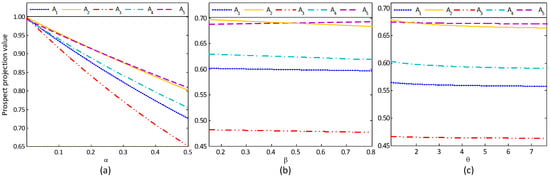 To study the influence of the parameters in the prospect value function on the decision-making results (i.e., how to select the optimal alternative), we now conduct a sensitivity analysis of these parameters.