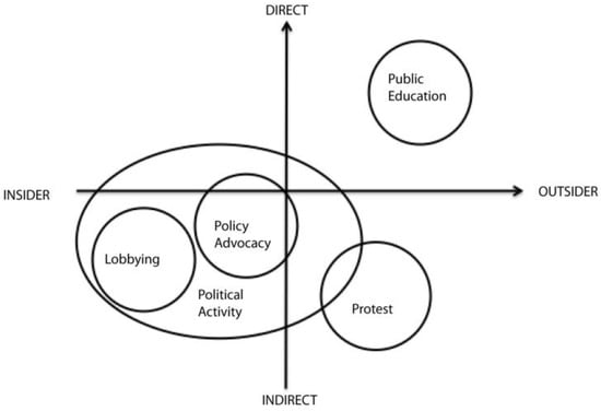Conceptual relationship between lobbying, policy advocacy, protest, public education and political activity. Source: Pekkanen and Smith [].
