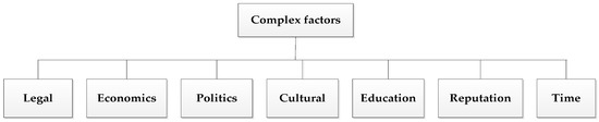 Additionally, the school has complex factors that influence interaction, communication, and participation activities. The first is legal factors: the school has to follow rules and obey U.K. laws, as does every school or institution in the United Kingdom. The second factor is economics: the economy of the UK and indeed the whole world has suffered in the last few years, and the school has struggled but can survive. The third factor is politics: for example, health and safety regulations making certain school activities difficult may have a political basis. The fourth factor is culture: the students come from multicultural backgrounds, such as English, Chinese, and Russian. The fifth factor is education, with students coming from different schools. The sixth factor is the reputation the school has maintained as one of the oldest schools with good academic results. The seventh factor is time: for instance, one parent said he lacked the time for participation in school activities. Figure 5 shows the complex factors that influence this grammar school.