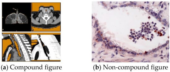 Examples of compound figure and non-compound figure. (a) Compound figure adapted from []: computed tomography (CT). (b) Non-compound figure adapted from []: immunohistochemistry of equine lung tissue in Recurrent Airway Obstruction (RAO).