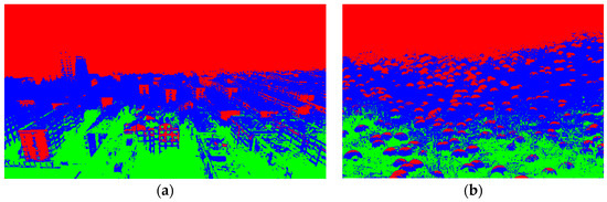 Note that, the segmentation accuracy is generally proportional to the value of according to Equation (5); nevertheless, the computational cost is another important concern. After repeated testing, we take as a balanced choice for our method. The corresponding scene segmentation results for Figure 2 are displayed in Figure 3.