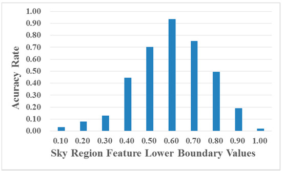 Accuracy rate of sky region detection using different sky region feature lower boundary values.