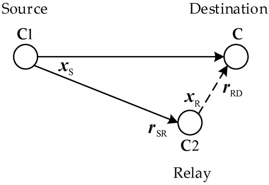 22]. The three terminals are source-S, relay-R, and destination-D, as shown in