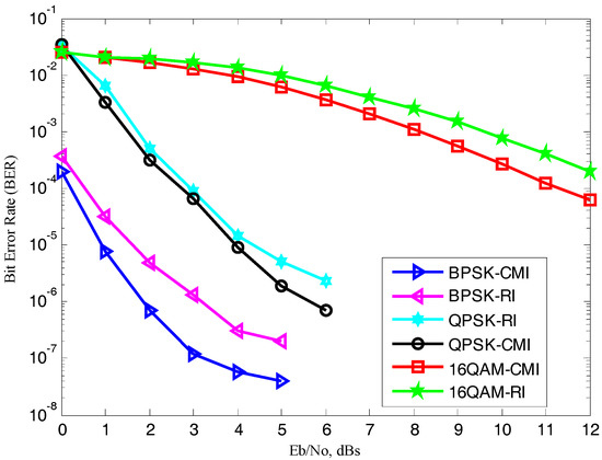 Section 6, the BER performance comparison of CMI with uniform random interleaver (RI) for turbo coded OFDM with different modulation techniques over AWGN channel are discussed. Furthermore, turbo coded OFDM with MIMO (2 × 2) antennas over fast Rayleigh fading channels under different modulation schemes are also discussed. Monte Carlo simulated results of turbo coded-OFDM with MIMO (2 × 2) antennas in cooperation with different modulation schemes under CMI are presented and discussed in this section. Finally, the paper comes to an end with the conclusion drawn in